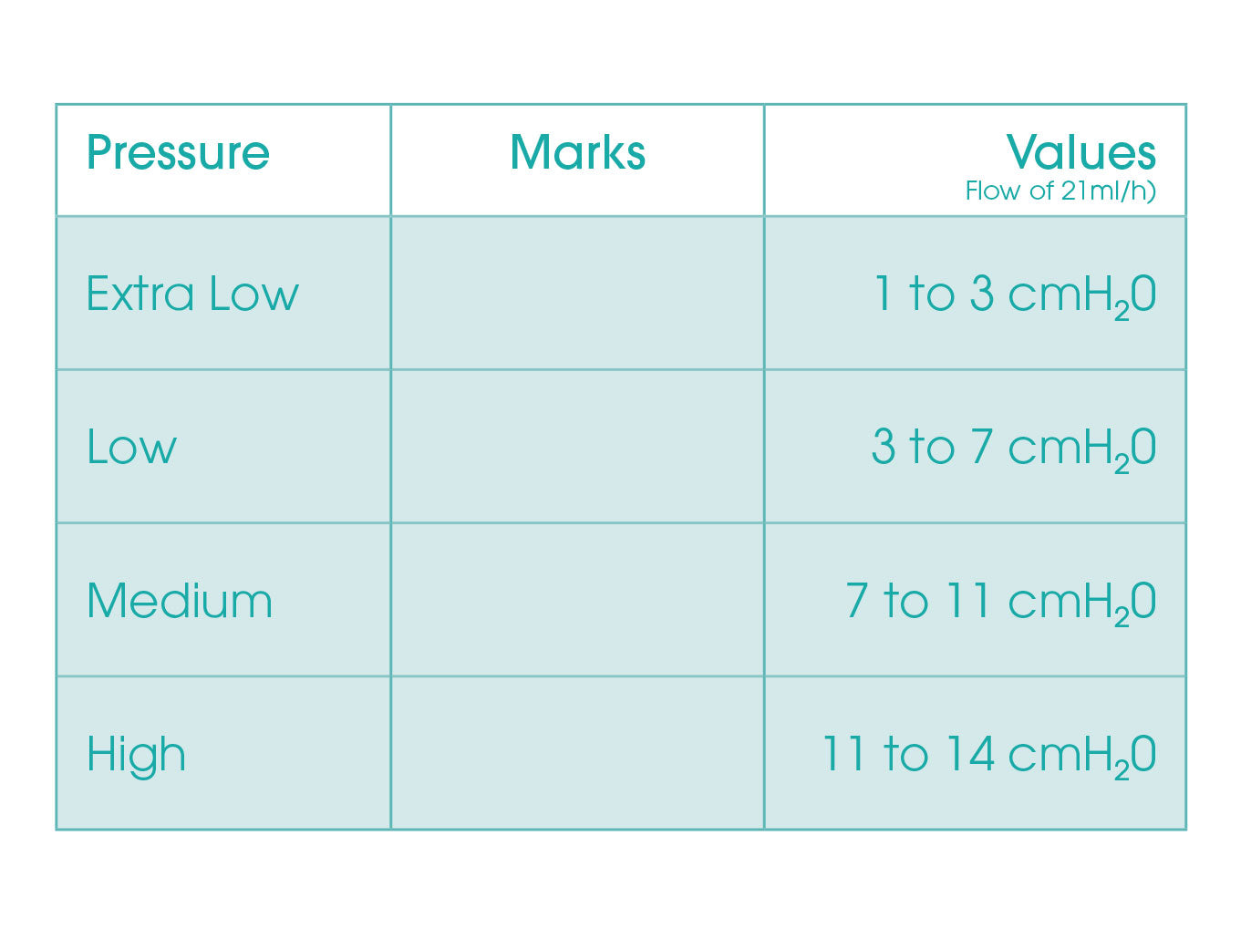 - Low: 3 - 7 cmH2O